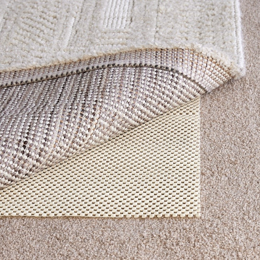 It reduces show-through under pale or thin rugs while delivering the same non-slip hold.